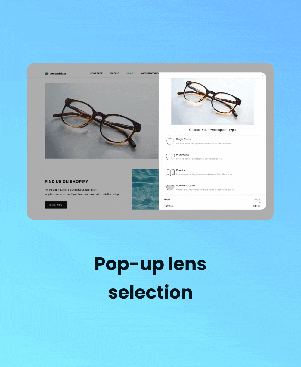 Provide a comprehensive solution for offering prescription lenses, ensuring a smooth and professional experience for your customers.