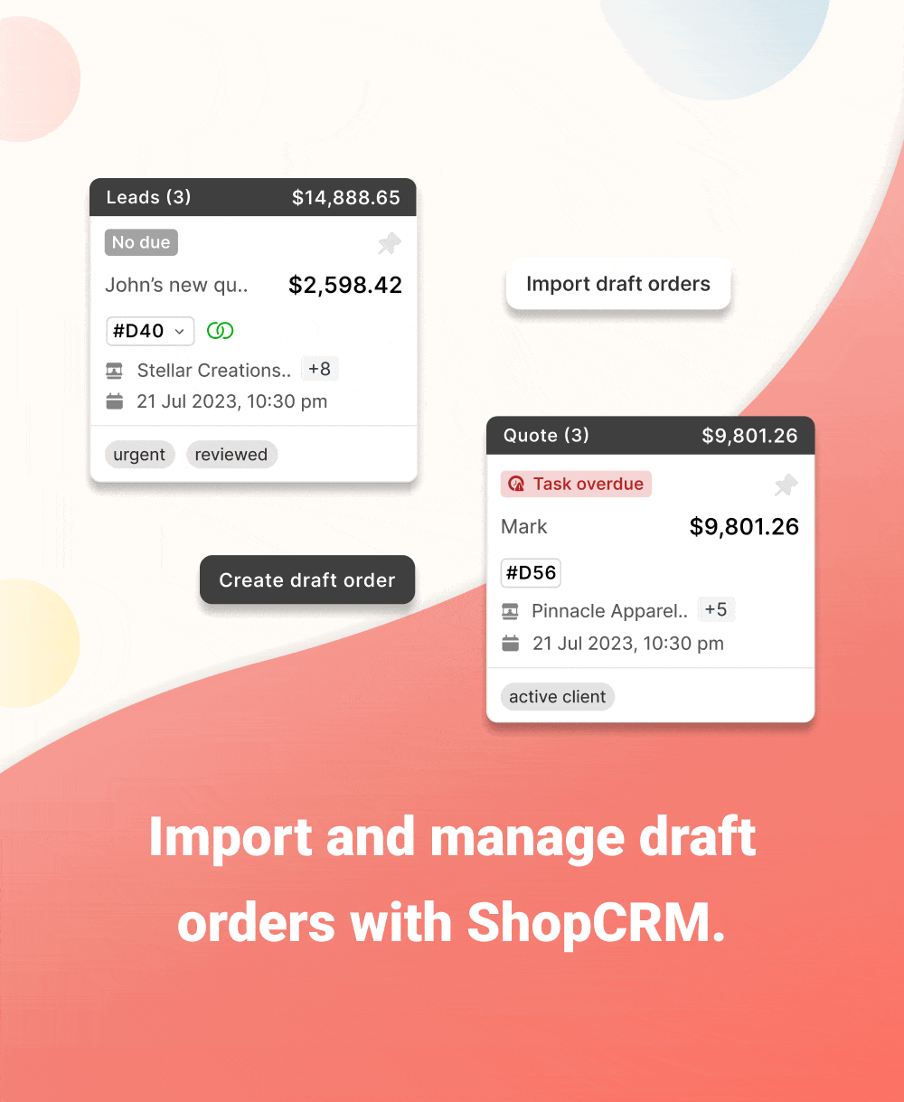 Improve your order management process by importing draft orders, automating follow-ups, and generating quotes effortlessly.
